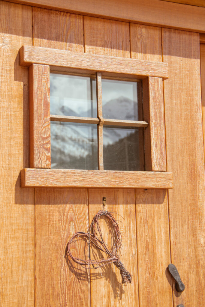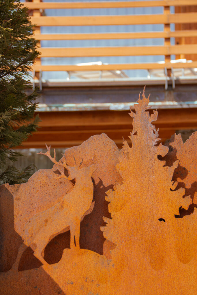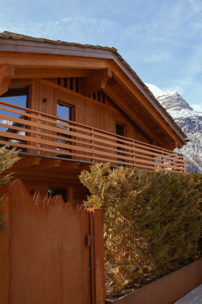 Anche il design dei particolari quali le ringhiere o i cancelli di ingresso della casa sono stati disegnati per caratterizzarne l’architettura alpina.