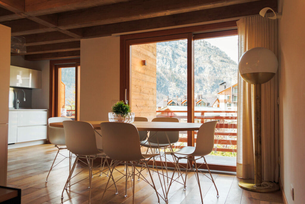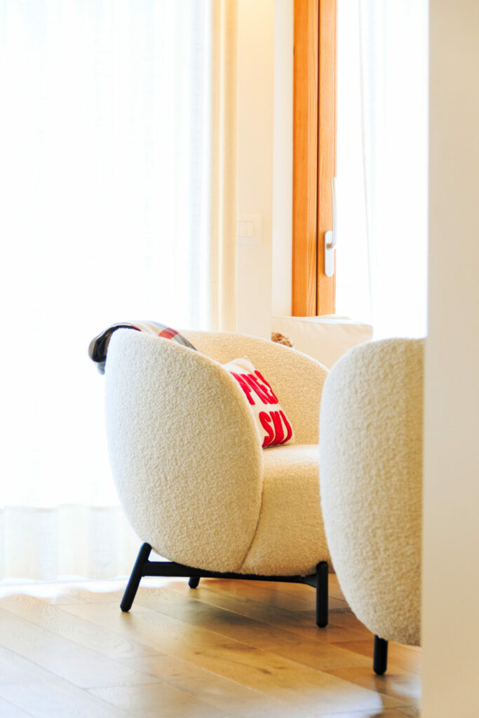 Questo intervento si caratterizza per una ideazione moderna dello stile alpino, visto che la committenza desiderava uno chalet rivisitato sia nei materiali che nel design.